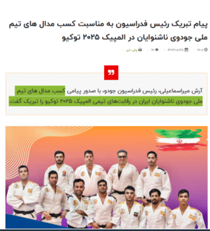 رئیس فدراسیون جودو طی پیامی مدال آوری تیم ملی جودو ناشنوایان ایران در بازی های المپیک ۲۰۲۵ ژاپن را تبریک گفت.